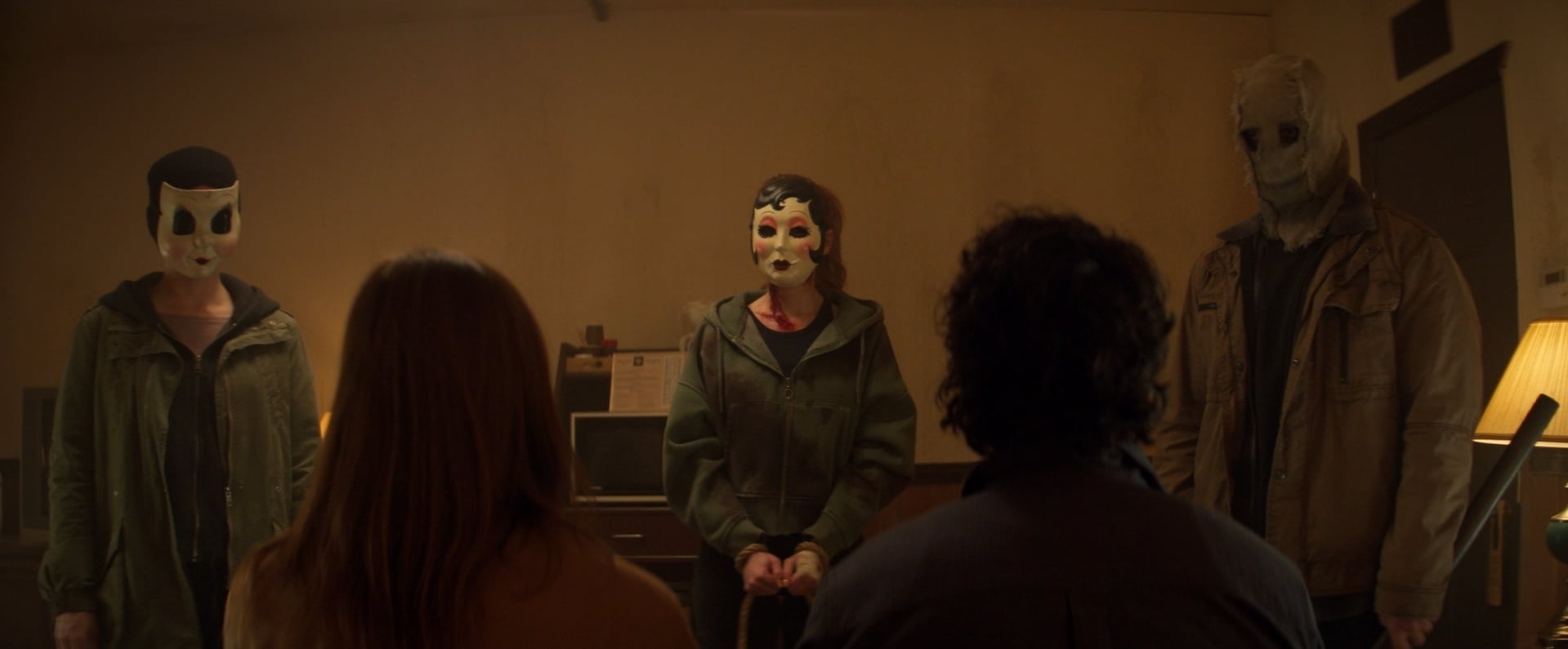 ทว่ารถเกิดเสียจนต้องเช่าห้องพักและได้เจอกับกลุ่มฆาตกรหน้ากากทั้ง 3 รายได้แก่ The Man in the Mask ผู้นำกลุ่มที่สวมถุงกระสอบ, Dollface หญิงสาวในหน้ากากตุ๊กตาผู้หญิง และ Pin-Up Girl หญิงสาวในหน้ากากหญิงสาวผมบลอนด์สุดหลอน พวกมันไม่รอช้าลงมือสังหาร มาย่าและไรอันทันที แต่ทว่า “มาย่า” รอดตายมาได้ แต่สุดท้าย 3 ฆาตกรก็ยังตามไล่เข่นฆ่าคนรอบ ๆ ตัวเธอไปเรื่อย ๆ